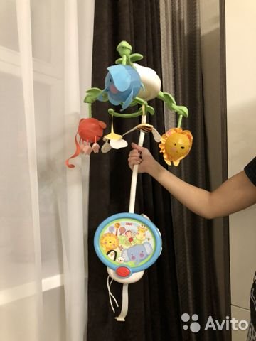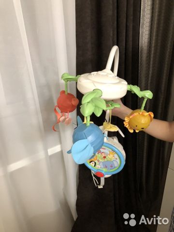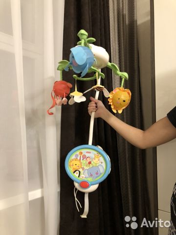 мобиль Fisher Price – это веселое развлечение для малыша и возможность развиваться, играя. Мобиль прост в сборке, устанавливается на кроватку. Несколько долгоиграющих спокойных мелодий или короткие колыбельные помогут малышу расслабиться и задремать или, напротив, настроят на веселый лад. Ребенок будет с увлечением следить за симпатичными фигурками зверушек ,тренировать зрительное и слуховое восприятие, внимание