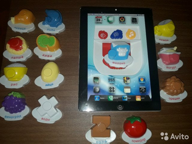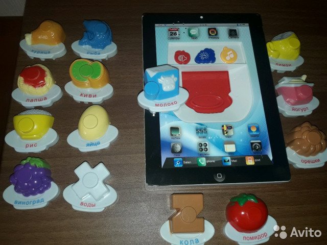 Обучающий планшет (размер 19*13 см). В коробке. Состояние идеальное. Регулировка громкости. Озвучивает вставляемый предмет и дает краткое описание ему. Есть просто мелодии. Могу попутно подвезти